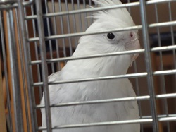 まず、いつものリビングに連れてくるとメスのピコは、羽つくろい。オスのミルは、さっそく得意のミッキーマーチの唄を歌います。